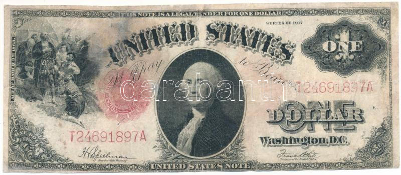 Amerikai Egyesült Államok 1917. 1$ "United States Note" piros pecséttel, "T24691897A" sorszámmal. Szign.: "Frank White" & "Harley V. Speelman" T:VG, restaurált /
