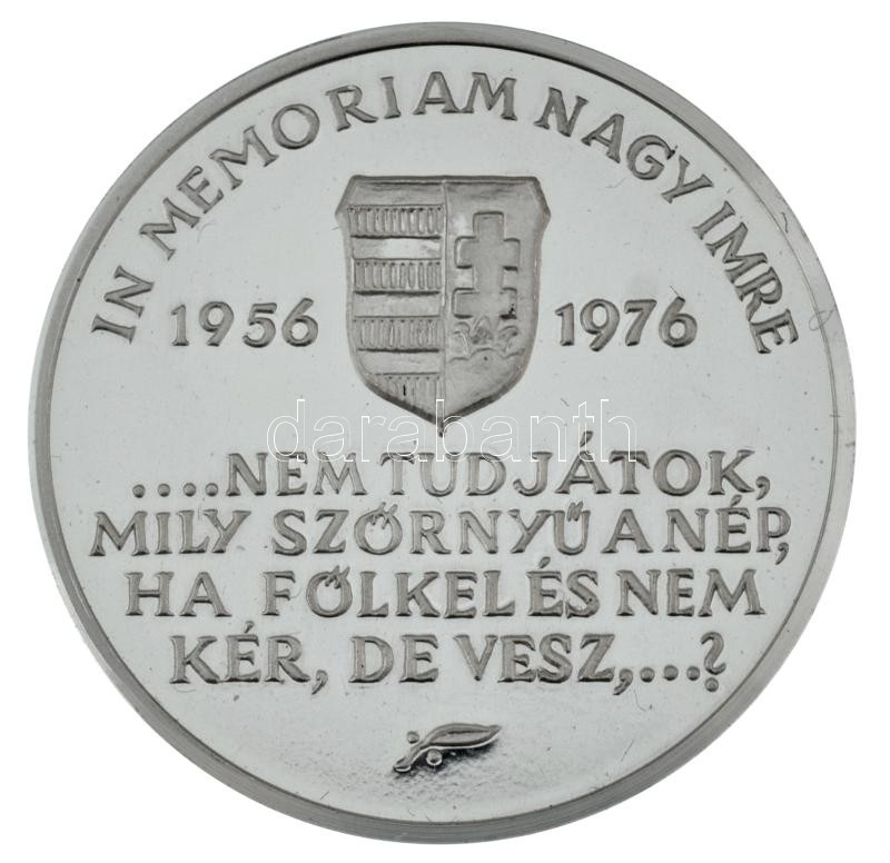 Amerikai Egyesült Államok 1976. "In Memoriam Nagy Imre - ...Nem tudjátok, mily szörnyű a nép, ha fölkel és nem kér, de vesz...?" kétoldalas, peremén jelzett Ag emlékérem kapszulában (~22g/0.925/38mm) T:PP / USA 1976. "In Memoriam Imre Nagy (1896-1958), Prime Minister of Hungary during the 1956 revolution" double-sided Ag medallion in capsule (~22g/0.925/38mm) T:PP