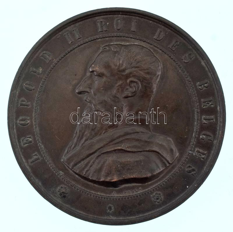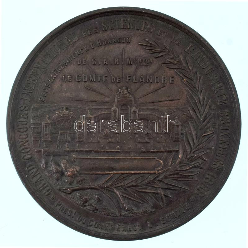 Belgium 1888. "Grand Concours International des Sciences et de l'Industrie Bruxelles 1888 / Leopold II Roi des Belges (Nagy Nemzetközi Tudományos és Ipari Verseny Brüsszel 1888 / II. Lipót, a belgák királya)" bronz emlékérem (63mm) T:AU patina / Belgium 1888. "Grand Concours International des Sciences et de l'Industrie Bruxelles 1888 / Leopold II Roi des Belges (Great International Scientific and Industrial Competition Brussels 1888 / Leopold II, King of the Belgians)" bronze commemorative medal (63mm) C:AU patina