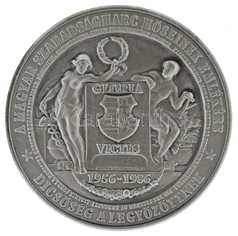 Német Szövetségi Köztársaság 1986. "A magyar szabadságharc hőseinek emlékére - Dicsőség a legyőzöttnek - Gloria victis - Numismatica Hungarica / Az 1956-os magyar népfelkelés, szabadságharc és forradalom történelmi mozzanatai" peremén jelzett Ag emlékérem eredeti tokban (23,84g/1.000/38mm) T:BU / Federal Republic of Germany 1986. "In memory of the heroes of the Hungarian War of Independence - Glory to the vanquished - Gloria victis - Numismatica Hungarica / Historical moments of the 1956 Hungarian Uprising, War of Independence and Revolution" Ag medallion, hallmarked on the edge, in original case (23,84g/1.000/38mm) C:BU