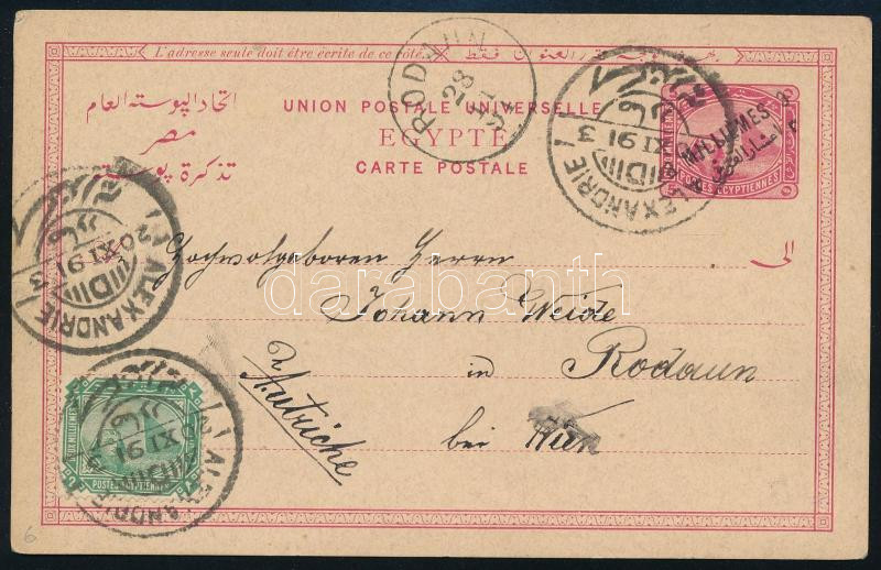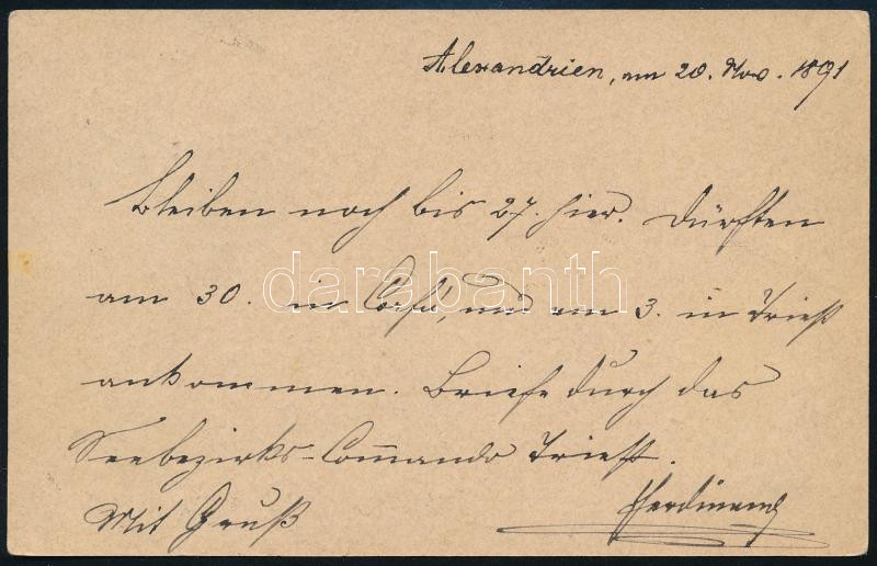 1891 Díjkiegészített díjjegyes levelezőlap Ausztriába / PS-card with a... https://www.darabanth.com/de/45-Gross-Auktion/45.1/Philatelie-und-Postgeschichte-Ausland/Agypten~18909/1891-Dijkiegeszitett-dijjegyes-levelezolap-Ausztriaba-PS-card-with-additional-franking-to-Au~II3413382