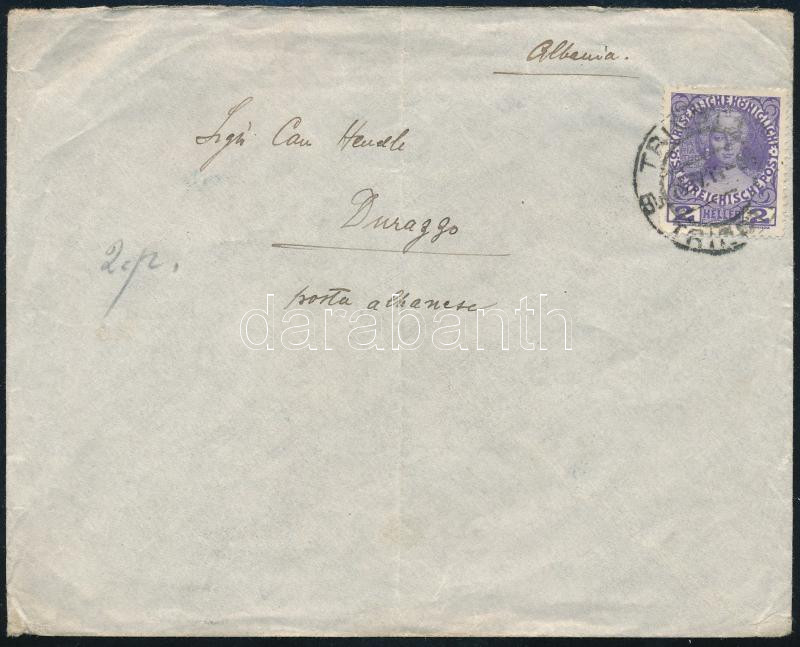 1914 Levél Ausztriából Albániába, 4 db albán portóval, kék bélyegzéssel / Cover from Austria to Albania with Albanian postage due stamps with blue cancellations