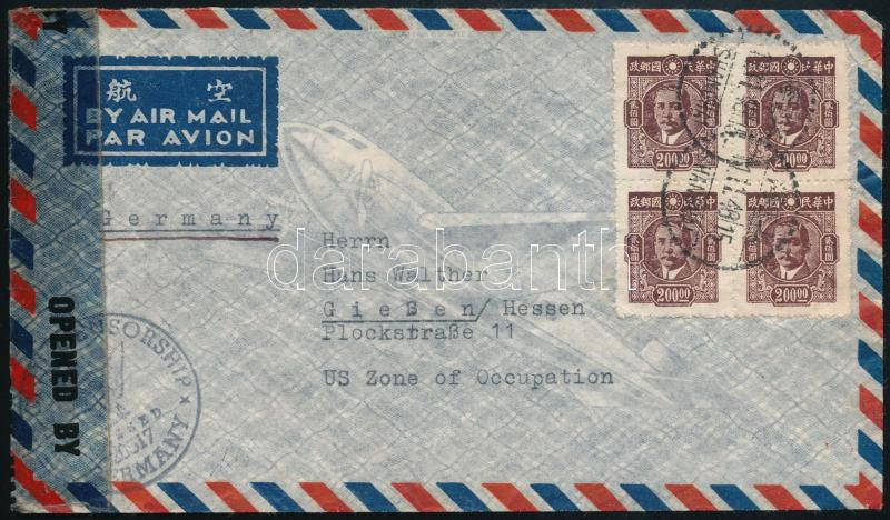1946 Légi cenzúrázott levél Németországba / Airmail censored cover to ... https://www.darabanth.com/de/45-Gross-Auktion/45.1/Philatelie-und-Postgeschichte-Ausland/China~18925/1946-Legi-cenzurazott-level-Nemetorszagba-Airmail-censored-cover-to-Germany~II3444201