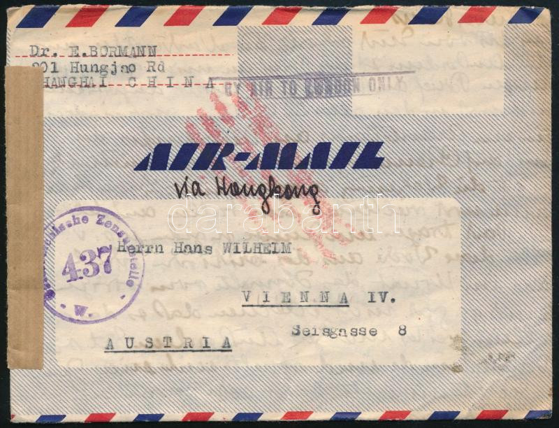 1947 Légi levél cenzúrázva Bécsbe / Airmail censored cover to Vienna https://www.darabanth.com/de/45-Gross-Auktion/45.1/Philatelie-und-Postgeschichte-Ausland/China~18925/1947-Legi-level-cenzurazva-Becsbe-Airmail-censored-cover-to-Vienna~II3413434
