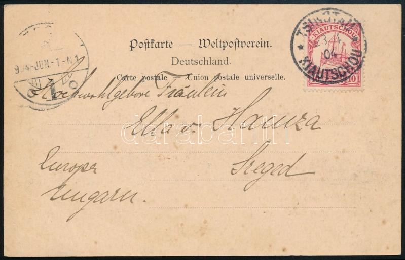 Kiautschou 1904 Képeslap Szegedre / Postcard to Hungary https://www.darabanth.com/de/45-Gross-Auktion/45.1/Philatelie-und-Postgeschichte-Ausland/Deutsche-Kolonien~18947/Kiautschou-1904-Kepeslap-Szegedre-Postcard-to-Hungary~II3436280