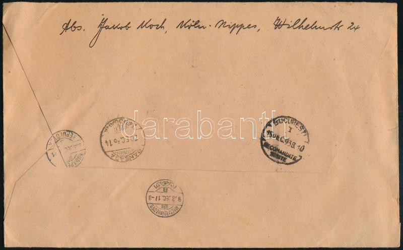 Beschreibung: 1938 Légi expressz levél 9 db bélyeggel / Airmail express cover "KÖLN"