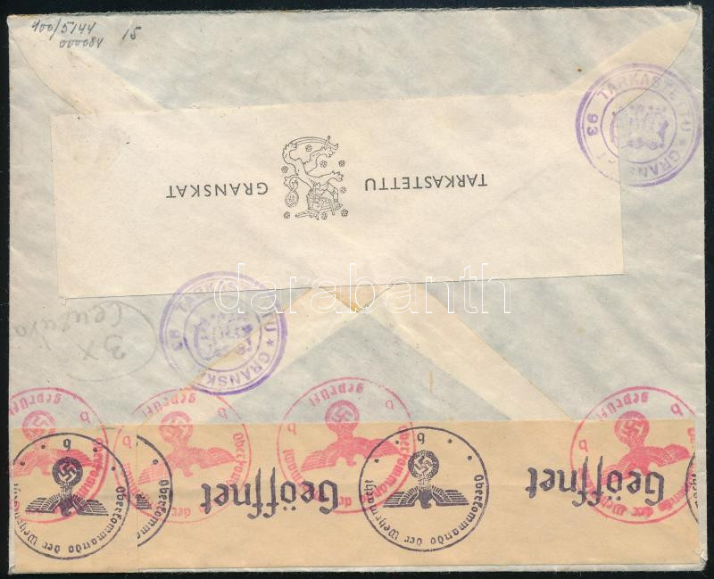 1943 Ajánlott cenzúrázott levél Belgiumba / Registered censored cover ... https://www.darabanth.com/de/45-Gross-Auktion/45.1/Philatelie-und-Postgeschichte-Ausland/Finland~18911/1943-Ajanlott-cenzurazott-level-Belgiumba-Registered-censored-cover-to-Belgium~II3450148