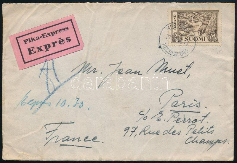 1946 Expressz levél Párizsba / Express cover to Paris https://www.darabanth.com/de/45-Gross-Auktion/45.1/Philatelie-und-Postgeschichte-Ausland/Finland~18911/1946-Expressz-level-Parizsba-Express-cover-to-Paris~II3450379