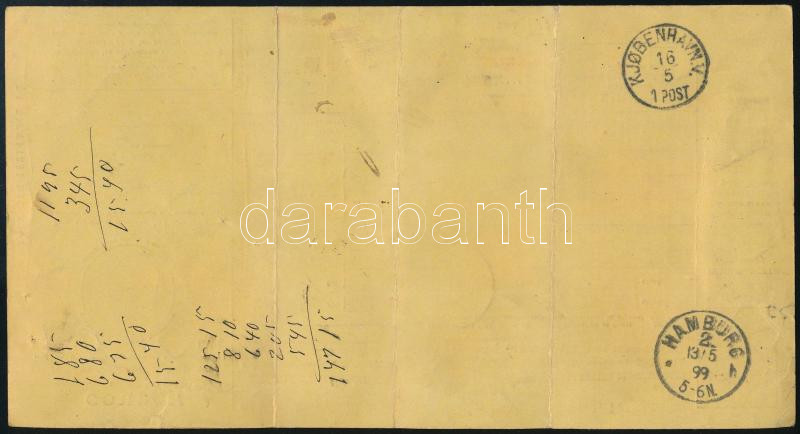 Beschreibung: 1899 Teljes csomagszállító Dániába / Complete parcel card to Denmark