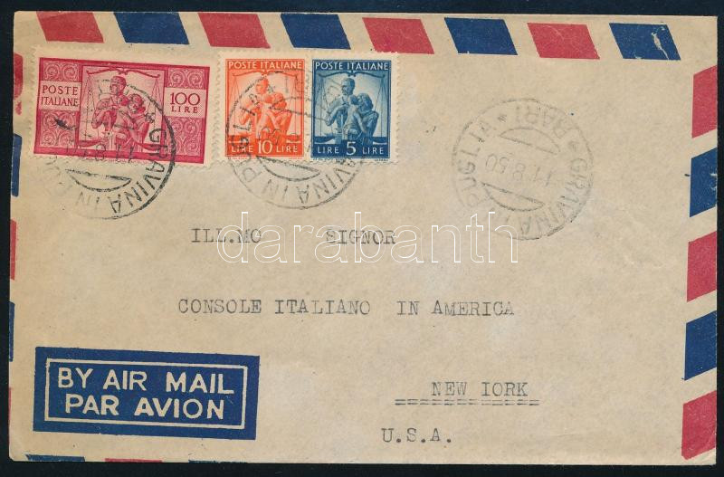 1950 Légi levél New Yorkba / Airmail cover to New York https://www.darabanth.com/de/45-Gross-Auktion/45.1/Philatelie-und-Postgeschichte-Ausland/Italien~18960/1950-Legi-level-New-Yorkba-Airmail-cover-to-New-York~II3420453