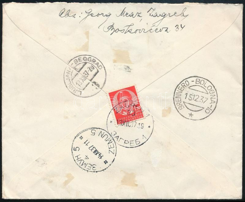 1927 Ajánlott légi levél / Registered airmail cover https://www.darabanth.com/de/45-Gross-Auktion/45.1/Philatelie-und-Postgeschichte-Ausland/Jugoslawien~18923/1927-Ajanlott-legi-level-Registered-airmail-cover~II3437523
