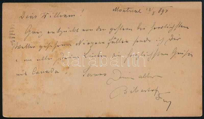 1893 Díjkiegészített díjjegyes levelezőlap, elfogazott bélyegpárral / ... https://www.darabanth.com/de/45-Gross-Auktion/45.1/Philatelie-und-Postgeschichte-Ausland/Kanada~18924/1893-Dijkiegeszitett-dijjegyes-levelezolap-elfogazott-belyegparral-PS-card-with-additional~II3413430