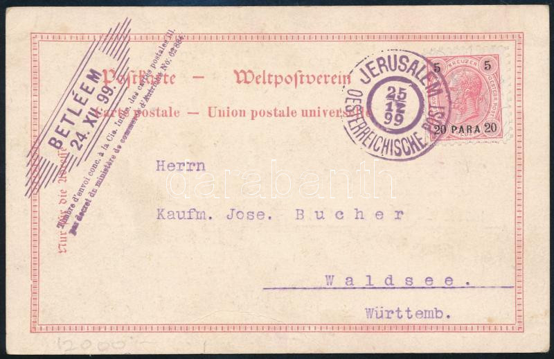 1899 Díjjegyes levelezőlap / PS-card "JERUSALEM" - Waldsee https://www.darabanth.com/de/45-Gross-Auktion/45.1/Philatelie-und-Postgeschichte-Ausland/Osterreich-Levant~18899/1899-Dijjegyes-levelezolap-PS-card-JERUSALEM-Waldsee~II3421197