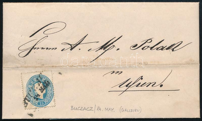 1862 15kr elfogazva levélen / 15kr with shifted perforation on cover &... https://www.darabanth.com/de/45-Gross-Auktion/45.1/Philatelie-und-Postgeschichte-Ausland/Osterreich~18898/1862-15kr-elfogazva-levelen-15kr-with-shifted-perforation-on-cover-BUCZACZ-Wien~II3451729