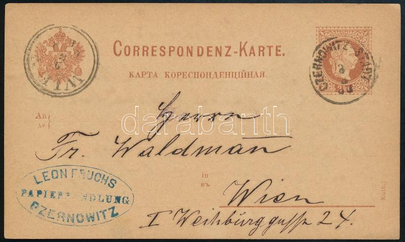1883 2kr díjjegyes levelezőlap / PS-card "CZERNOWITZ STADT" ... https://www.darabanth.com/de/45-Gross-Auktion/45.1/Philatelie-und-Postgeschichte-Ausland/Osterreich~18898/1883-2kr-dijjegyes-levelezolap-PS-card-CZERNOWITZ-STADT-Wien~II3451425