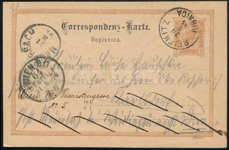Beschreibung: 1894 2kr díjjegyes levelezőlap / PS-card "REIFNITZ / RIBNICA"