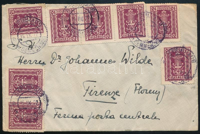 1922 Levél Firenzébe 27 bélyeggel / Cover to Florence with 27 stamps https://www.darabanth.com/de/45-Gross-Auktion/45.1/Philatelie-und-Postgeschichte-Ausland/Osterreich~18898/1922-Level-Firenzebe-27-belyeggel-Cover-to-Florence-with-27-stamps~II3445430