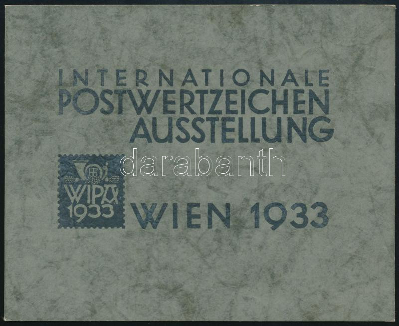 Ausztria 1933 WIPA blokk tokkal együtt, a beragasztásból származó ragasztónyomok alig látszanak, a blokk felül falcos. / Block with original gum, hinged, with folder (Mi EUR 2.750.-)
