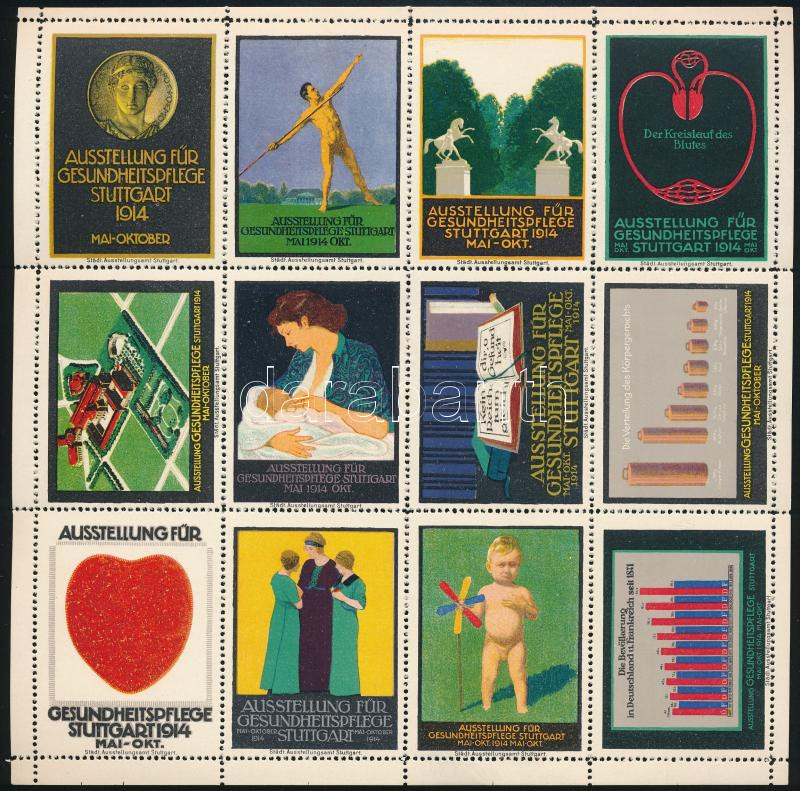 1914 Kiállítás Stuttgart levélzáró 12-es ívdarab https://www.darabanth.com/de/45-Gross-Auktion/45.1/Philatelie-und-Postgeschichte-Ausland/Paraphilatelie~18542/1914-Kiallitas-Stuttgart-levelzaro-12-es-ivdarab~II3446018