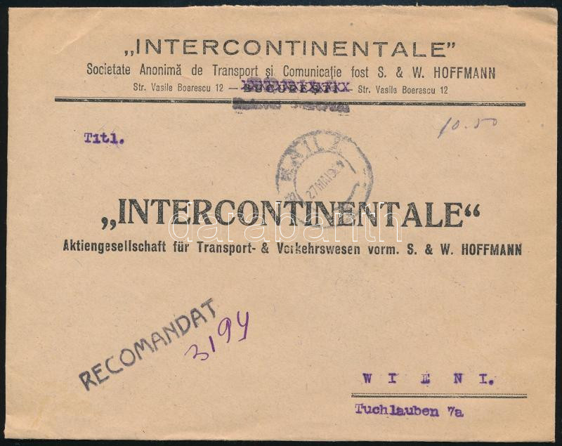 1919 Ajánlott levél Bécsbe 11 bélyeggel / Registered cover with 11 sta... https://www.darabanth.com/de/45-Gross-Auktion/45.1/Philatelie-und-Postgeschichte-Ausland/Rumanien~18963/1919-Ajanlott-level-Becsbe-11-belyeggel-Registered-cover-with-11-stamps-to-Vienna~II3439795