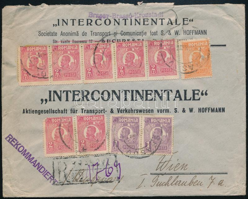 1921 Ajánlott levél / Registered cover with 10 stamps to Vienna https://www.darabanth.com/de/45-Gross-Auktion/45.1/Philatelie-und-Postgeschichte-Ausland/Rumanien~18963/1921-Ajanlott-level-Registered-cover-with-10-stamps-to-Vienna~II3439625