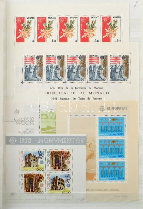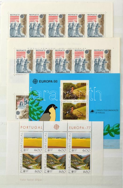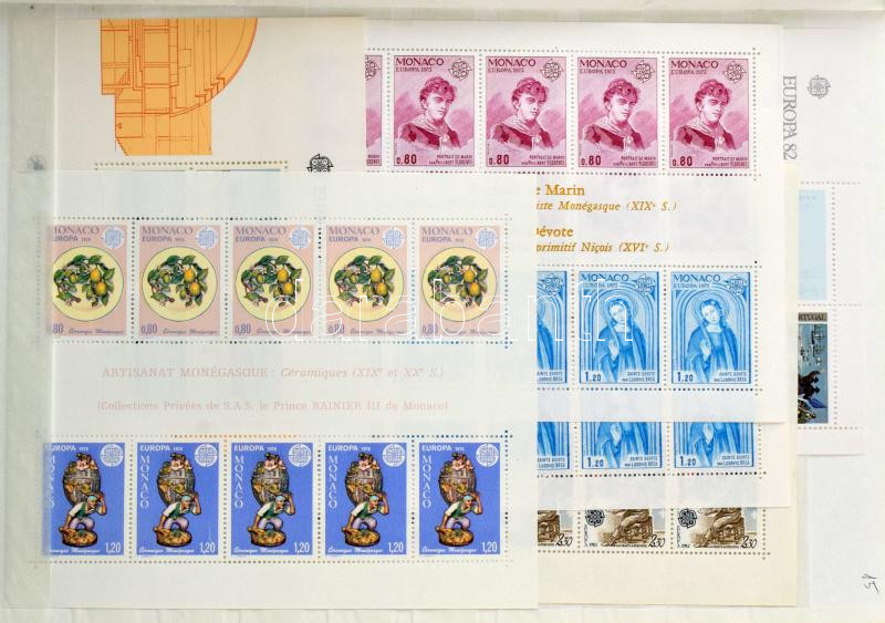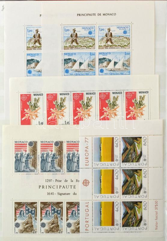 CEPT blokk és kisív tétel, ca. 140 db, közte portugál, francia, stb. + Svájc ENSZ ívek + Ciprus 1967 CEPT 200 db sor Mi 292-294 / Europe CEPT block and mini sheet lot, approx. 140 items, including Portuguese, French, etc. + UN Geneva sheets + Cyprus 1967 CEPT 200 sets, Mi 292-294 (Mi EUR min. 2.500.-)