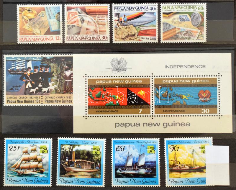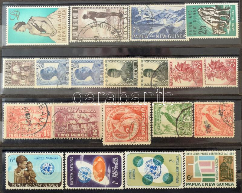 Pápua Új-Guinea összeállítás 10 lapos közepes berakóban, jobb értékekkel, motívum és forgalmi bélyegekkel egyaránt / Papua New Guinea lot in medium stockbook with better issues
