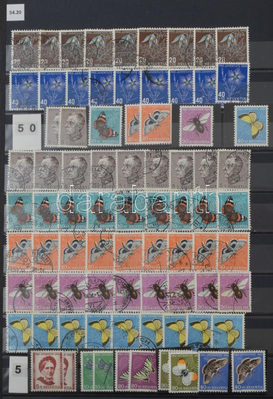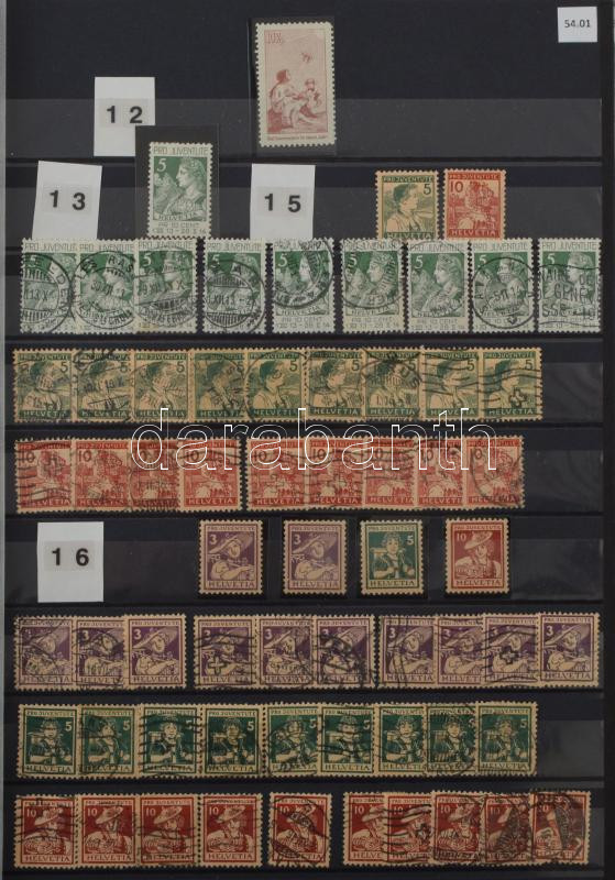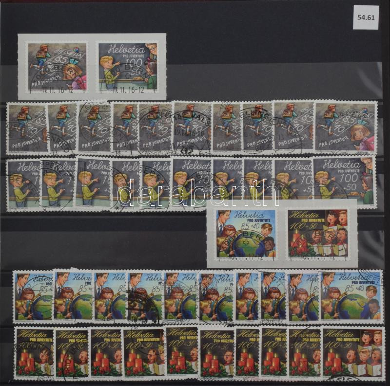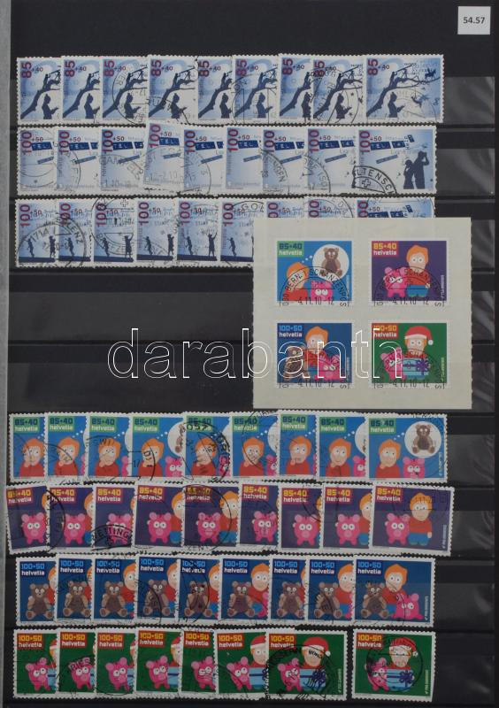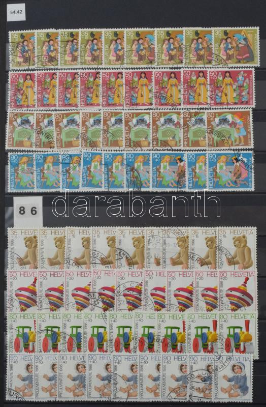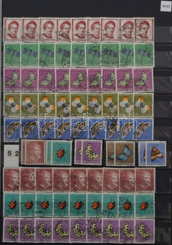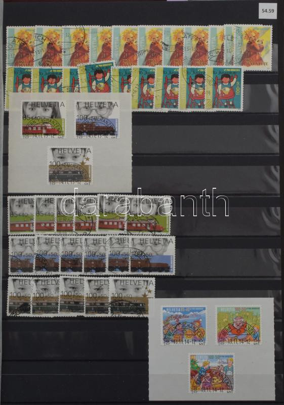 Svájc 1913-2016 Hatalmas sok példányos Pro Juventute előrendező / gyűjtemény, zömmel bélyegzett anyag de sok használatlan / postatiszta bélyeget is tartalmaz. Viszonteladónak, felbontásra ideális!! (Mi EUR 15.000.-) / Large Pro Juventute collection / accumulation with many duplicates, mostly used stamps but also includes many unused stamps.