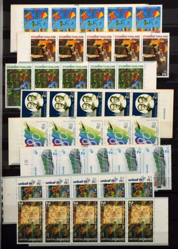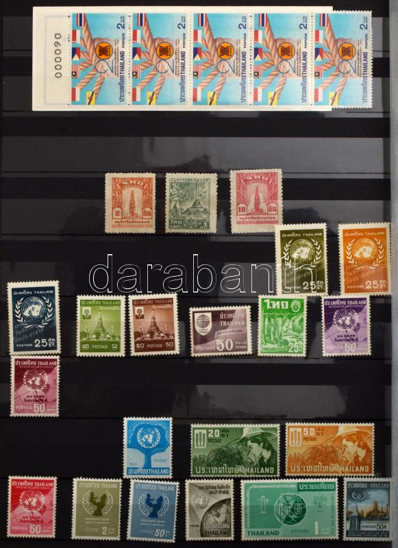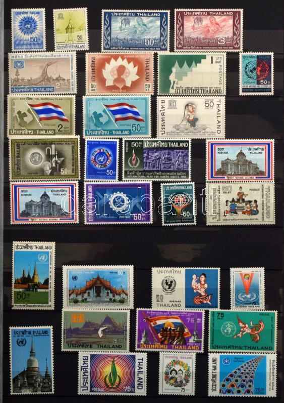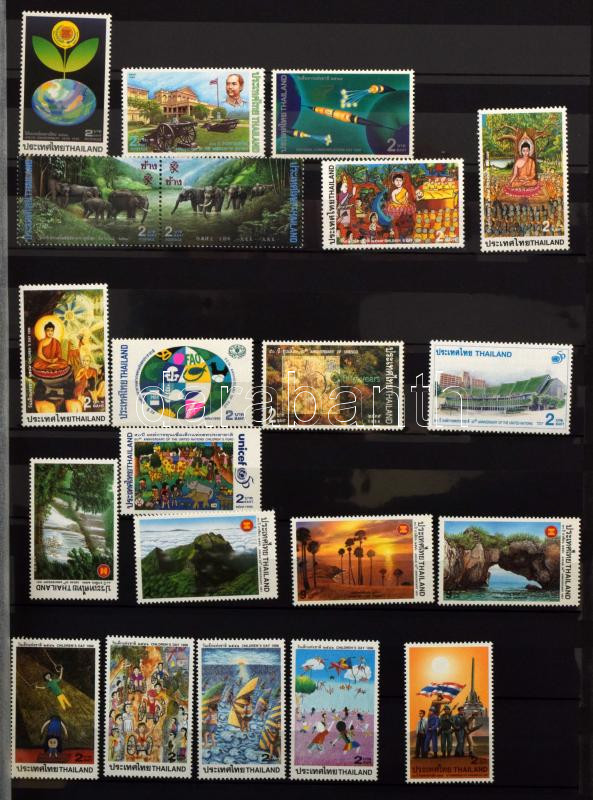 Thaiföld kis gyűjtemény szép motívumokkal, benne 38 db bélyegfüzet, 7 db 2 oldalas A/4 berakó lapon / Collection with nice tematic issues, sets, blocks, 38 stamp booklets on 7 double sided stockcards