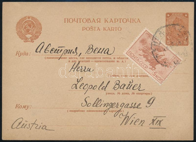 1930 Díjkiegészített díjjegyes levelezőlap / PS-card with additional f... https://www.darabanth.com/de/45-Gross-Auktion/45.1/Philatelie-und-Postgeschichte-Ausland/Sowjetunion~18970/1930-Dijkiegeszitett-dijjegyes-levelezolap-PS-card-with-additional-franking~II3413790