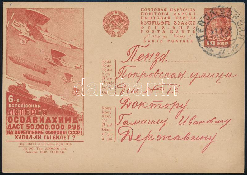 1933 Díjjegyes levelezőlap / PS-card https://www.darabanth.com/de/45-Gross-Auktion/45.1/Philatelie-und-Postgeschichte-Ausland/Sowjetunion~18970/1933-Dijjegyes-levelezolap-PS-card~II3413809