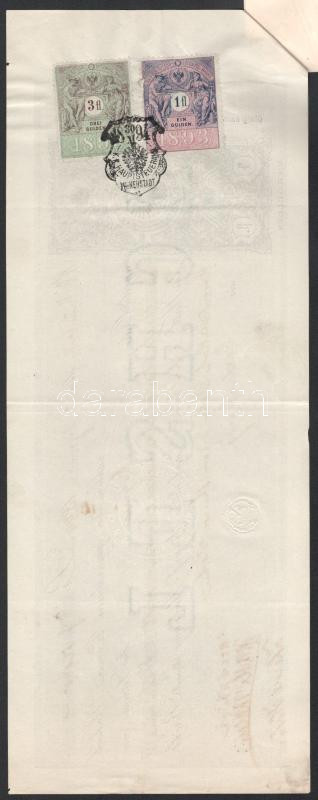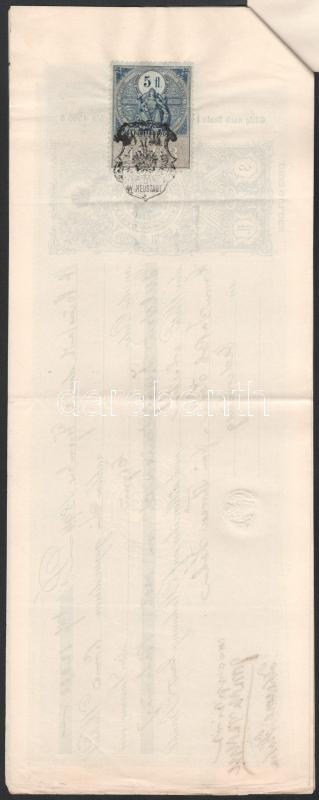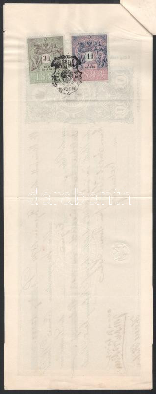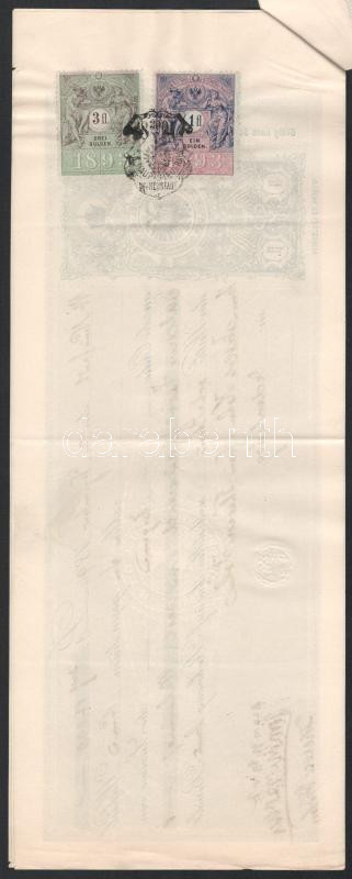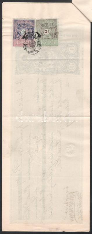 Beschreibung: 1894 8 db osztrák váltó összekapcsolva, 3-4 guldenesek és vegyes 1-5Fl illetékbélyeg kiegészítések