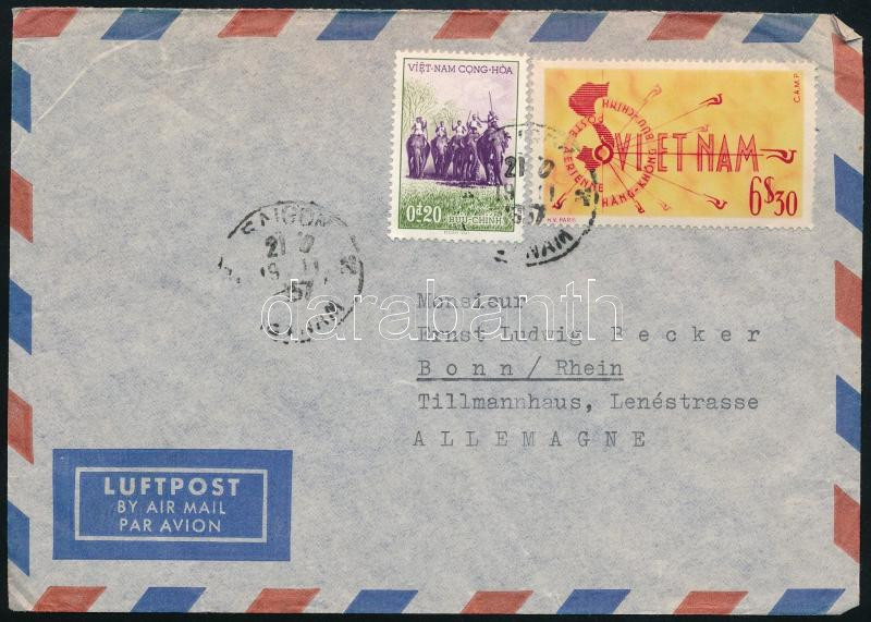 1957 Légi levél / Airmail cover https://www.darabanth.com/de/45-Gross-Auktion/45.1/Philatelie-und-Postgeschichte-Ausland/Sudvietnam~18907/1957-Legi-level-Airmail-cover~II3442184