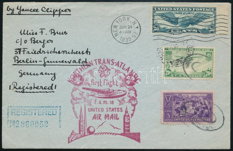 1939 Ajánlott légi levél Németországba / Registered airmail cover to G... https://www.darabanth.com/de/45-Gross-Auktion/45.1/Philatelie-und-Postgeschichte-Ausland/Vereinigte-Staaten-von-Amerika~18896/1939-Ajanlott-legi-level-Nemetorszagba-Registered-airmail-cover-to-Germany-NORTHERN-TRANS-AT~II3445574