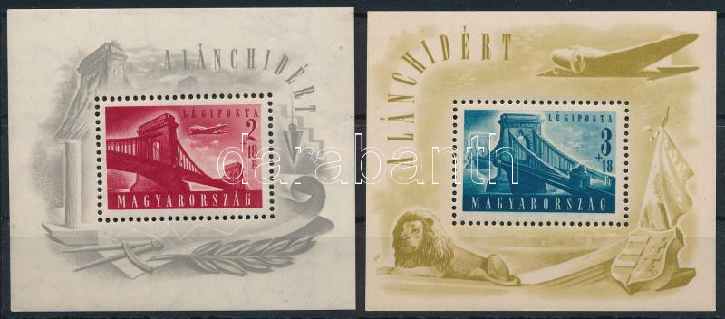 Beschreibung: 1948 Lánchíd I. + II. blokk (70.000) / Mi 12-13 block