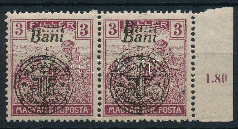 Beschreibung: Nagyvárad 1919 Arató 3f ívszéli pár kettős felülnyomással / Mi 27 II. margin pair with double overprint