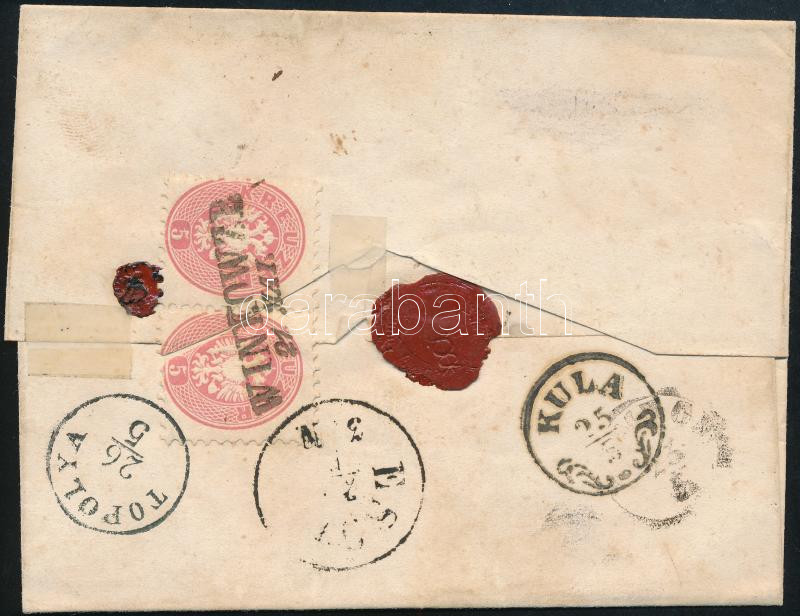 ~1864 4 x 5kr ajánlott levélen (a hátsó 2 bélyeg sérült) / 4 x 5kr on ... https://www.darabanth.com/de/45-Gross-Auktion/45.1/Philatelie-und-Postgesichte-Ungarn-Live/Briefmarkenausgabe-1864~18562/7E1864-4-x-5kr-ajanlott-levelen-a-hatso-2-belyeg-serult-4-x-5kr-on-registered-cover-damag~II3438734