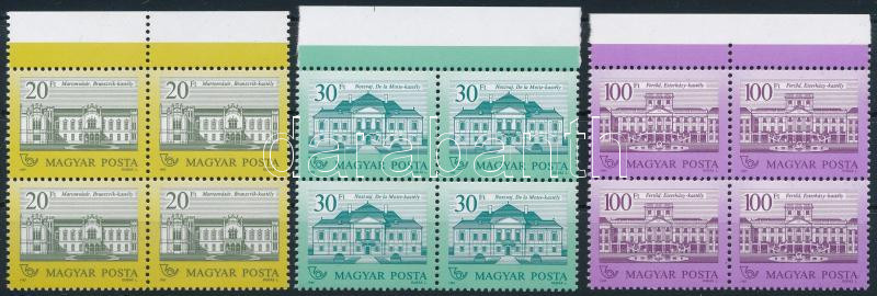 1987 Kastélyok 20Ft, 30Ft, 100Ft ívszéli négyestömbökben matt-fényes p... https://www.darabanth.com/de/45-Gross-Auktion/45.1/Philatelie-und-Postgesichte-Ungarn-Live/Neuheiten-ab-1957~18717/1987-Kastelyok-20Ft-30Ft-100Ft-ivszeli-negyestombokben-matt-fenyes-papiron-12-11-12-fo~II3446309