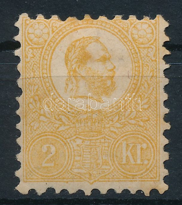 1871 Kőnyomat 2kr sárga eredeti gumival (290.000) / Mi 1b with origina... https://www.darabanth.com/de/45-Gross-Auktion/45.1/Philatelie-und-Postgesichte-Ungarn-Live/Steindruck~18566/1871-Konyomat-2kr-sarga-eredeti-gumival-290000-Mi-1b-with-original-gum-pici-rozsda-light-~II3449903