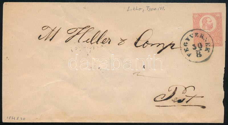 1871 Kőnyomat 5kr díjjegyes boríték (VI. típus) / Litho 5kr PS-cover