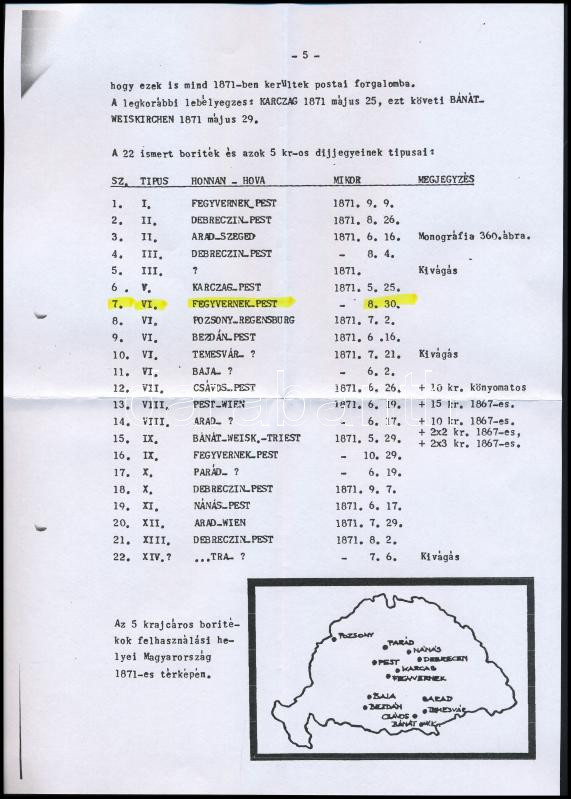 Hátoldalon Bánfalvy tulajdonosi jelzéssel. Mellékelve Bánfalvy listája 1980-ból, ahol a levél a 7. sorszámú. / Bánfalvy's ownership sign on the backside. Attached Bánfalvy's list from 1980, where the letter is the numbered 7.