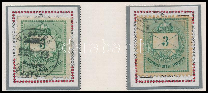 Beschreibung: 1874 2 x 3kr durva gyöngyjavítással (ex Orbán, Sebestyén aranyérmes kiállítási anyagból) / with retouche