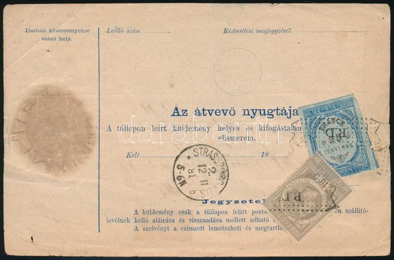 1881 Értékcsomag szállítólevél / Parcel card to Paris https://www.darabanth.com/de/45-Gross-Auktion/45.1/Philatelie-und-Postgesichte-Ungarn-Online/Ausgaben-1874-1899~18742/1881-Ertekcsomag-szallitolevel-Parcel-card-to-Paris~II3451710