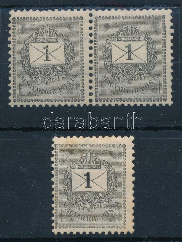1889 1kr pár és bélyeg 12 : 11 3/4 fogazással, 2 érték nagy 1-sel (roz... https://www.darabanth.com/de/45-Gross-Auktion/45.1/Philatelie-und-Postgesichte-Ungarn-Online/Ausgaben-1874-1899~18742/1889-1kr-par-es-belyeg-12-11-34-fogazassal-2-ertek-nagy-1-sel-rozsda-stain~II3448833