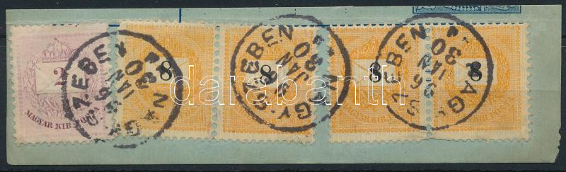 Beschreibung: 1889 2kr + 4 x 8kr kivágáson "NAGY-SZEBEN"