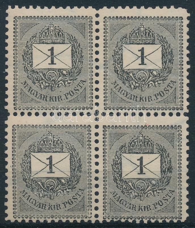 Beschreibung: 1889 Feketeszámú 1kr 4-es tömbben 11 1/2 fogazással