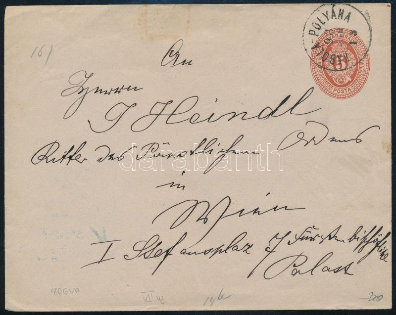 1893 5kr díjjegyes boríték / PS-cover "KABOLA-POLYÁNA" https://www.darabanth.com/de/45-Gross-Auktion/45.1/Philatelie-und-Postgesichte-Ungarn-Online/Ausgaben-1874-1899~18742/1893-5kr-dijjegyes-boritek-PS-cover-KABOLA-POLYANA~II3426933