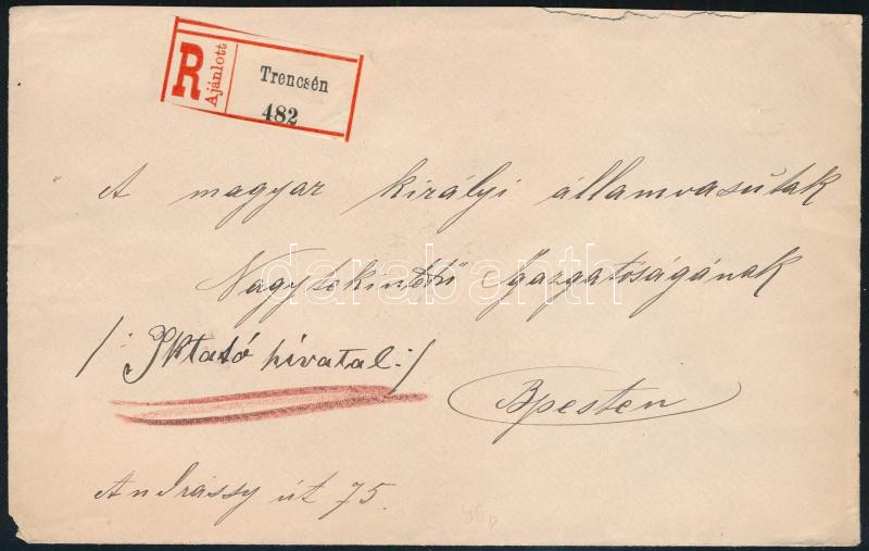 1894 Ajánlott levél 4 x 5kr bélyeggel "TRENCSÉN" - Budapest https://www.darabanth.com/de/45-Gross-Auktion/45.1/Philatelie-und-Postgesichte-Ungarn-Online/Ausgaben-1874-1899~18742/1894-Ajanlott-level-4-x-5kr-belyeggel-TRENCSEN-Budapest~II3271238