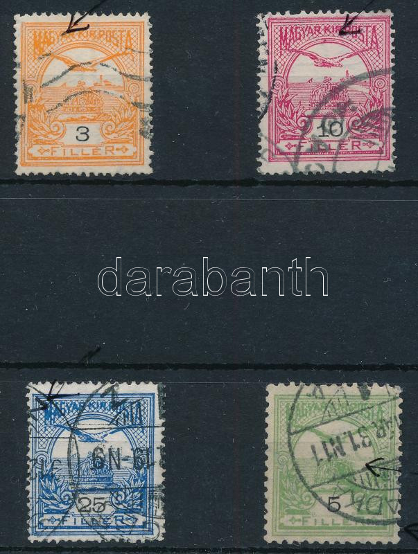 Beschreibung: 1900-1913 4 db lemezhibás Turul bélyeg