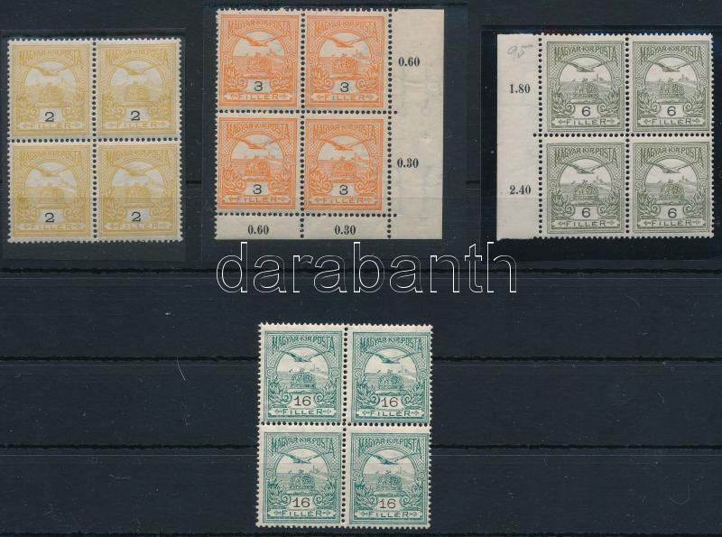 1909 4 klf Turul négyestömb, benne típusvariációk https://www.darabanth.com/de/45-Gross-Auktion/45.1/Philatelie-und-Postgesichte-Ungarn-Online/Ausgaben-1900-1919~18744/1909-4-klf-Turul-negyestomb-benne-tipusvariaciok~II3450544